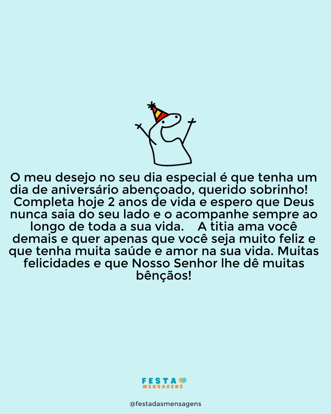 Minha sobrinha fofa, parabéns pelos 5 aninhos de vida! Você é uma menina linda e merece que o seu dia seja de muita festa, brincadeiras e doces! Meu coração está muito orgulhoso em ver você se tornar uma menina tão querida e inteligente. Sei que o seu futuro vai ser de muitas coisas boas e que os seus sonhos com certeza vão se realizar. Dance, brinque e faça tudo que precisa para ter um dia maravilhoso e um sorriso enorme no rosto. Um feliz aniversário e aproveite bastante o seu dia!
