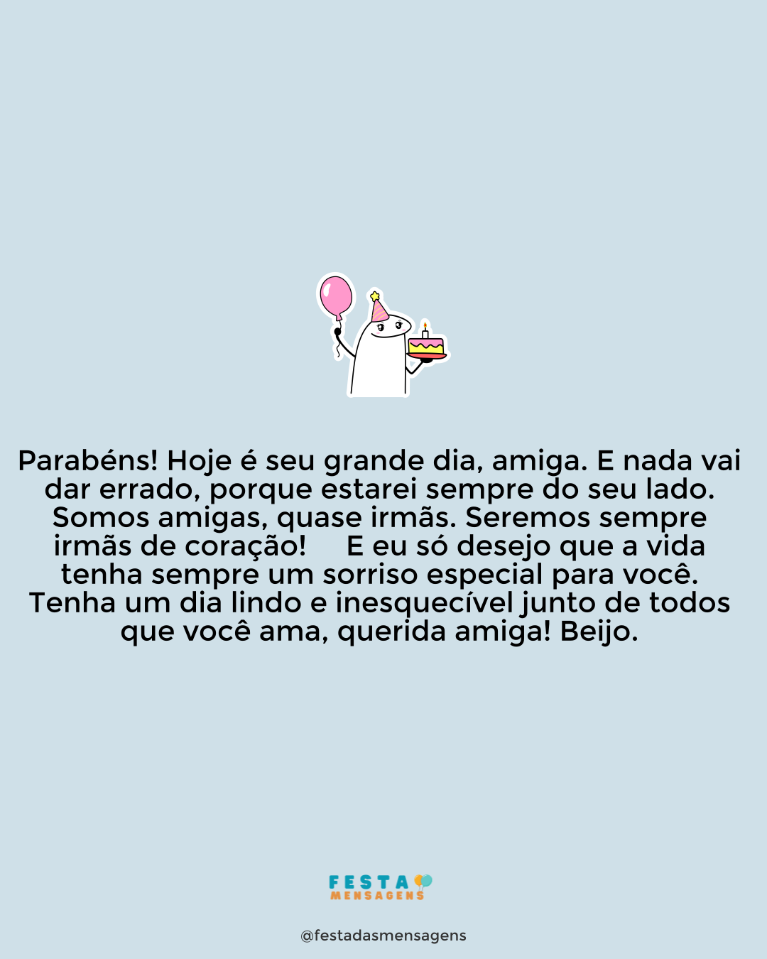 Feliz aniversário! Espero que hoje tenha um dia lindo e sorria muito, mas não demais, que nesta idade as rugas já vêm para ficar. 😁😂