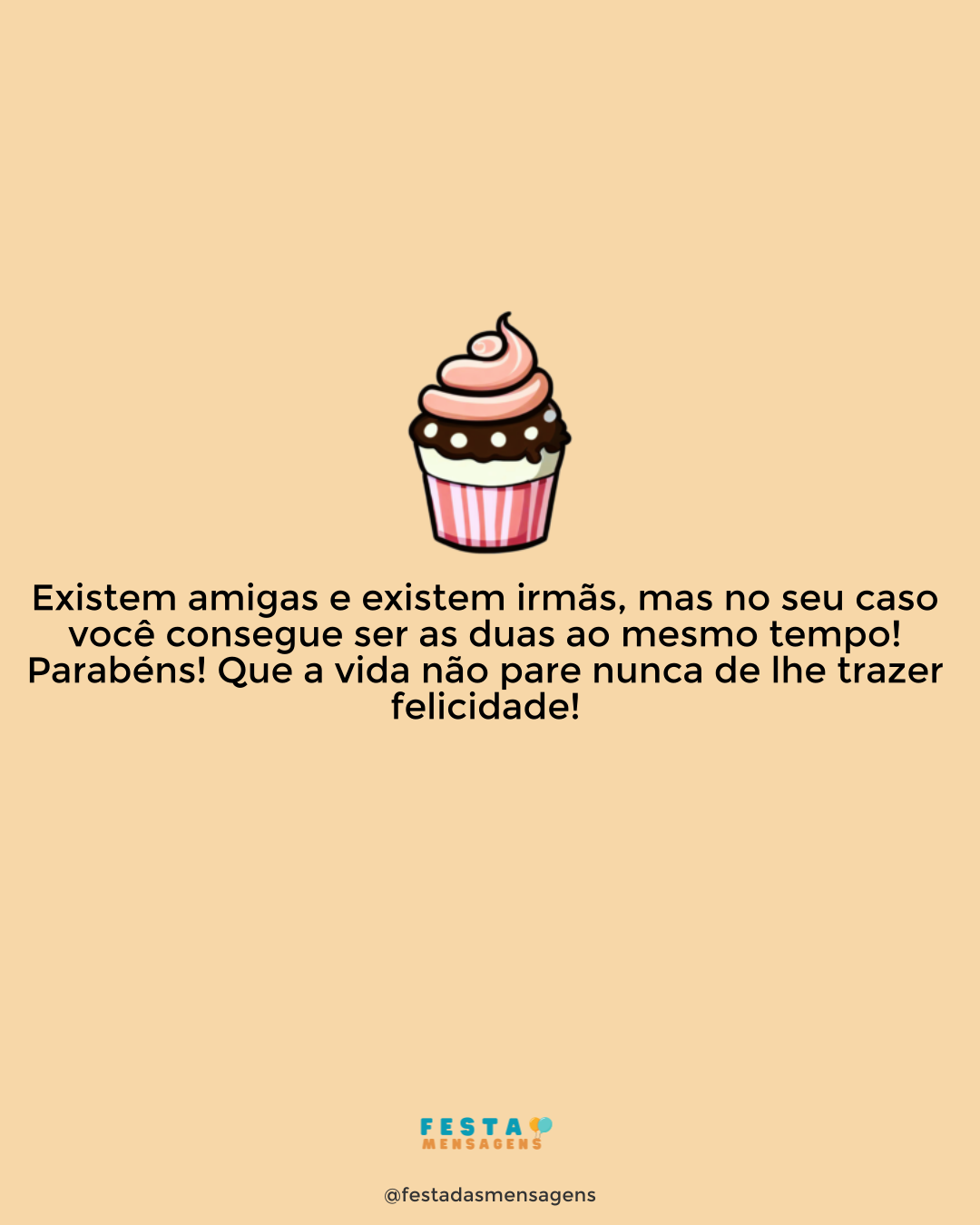 Dizem que os irmãos são as pessoas no mundo que guardam em seus corações parte das nossas memórias de infância. Se é assim, você é mais do que uma prima, é uma irmã. Com você compartilhei os momentos mais doces e divertidos da minha infância, e mesmo já não estando tão próximas fisicamente, me sinto muito ligada a você por tudo que vivemos e pela importância que uma tem na vida da outra. Nada nunca será capaz de diminuir o amor e a amizade que sinto por você, minha prima. O dia de hoje me traz muitas recordações, pois me lembro de todos os outros aniversários em que estivemos juntas celebrando. Este ano estamos distantes, mas saiba que farei um brinde muito especial em homenagem à sua saúde e felicidade. Eu lhe desejo tudo de lindo, leve e feliz que a vida tem a oferecer. Seja muito feliz minha prima de sangue, minha irmã de coração e alma. Eu te amo! Parabéns!