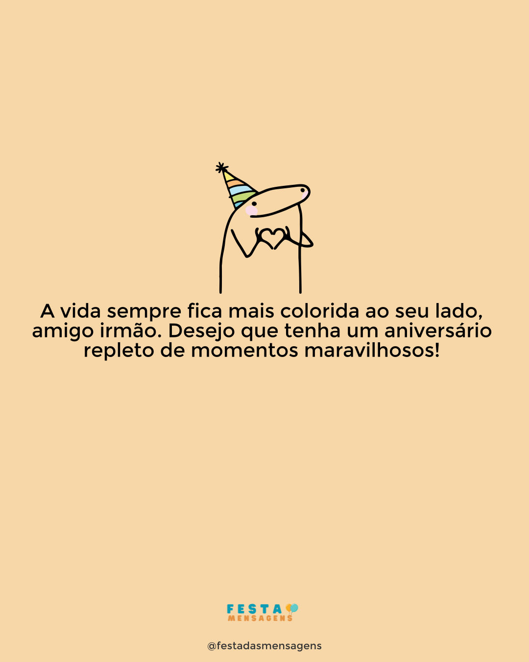 Feliz aniversário, amigo! Que seu caminho pela vida seja longo, sempre feliz e recheado de sucesso em todas as áreas da sua vida. Que nunca lhe faltem a saúde, as boas companhias e a boa disposição para desfrutar de todos os momentos, e o amor e a amizade. Hoje curta bem o seu dia, assopre as velinhas com energia e peça bastantes desejos. Divirta-se hoje e sempre. Parabéns, meu amigo!