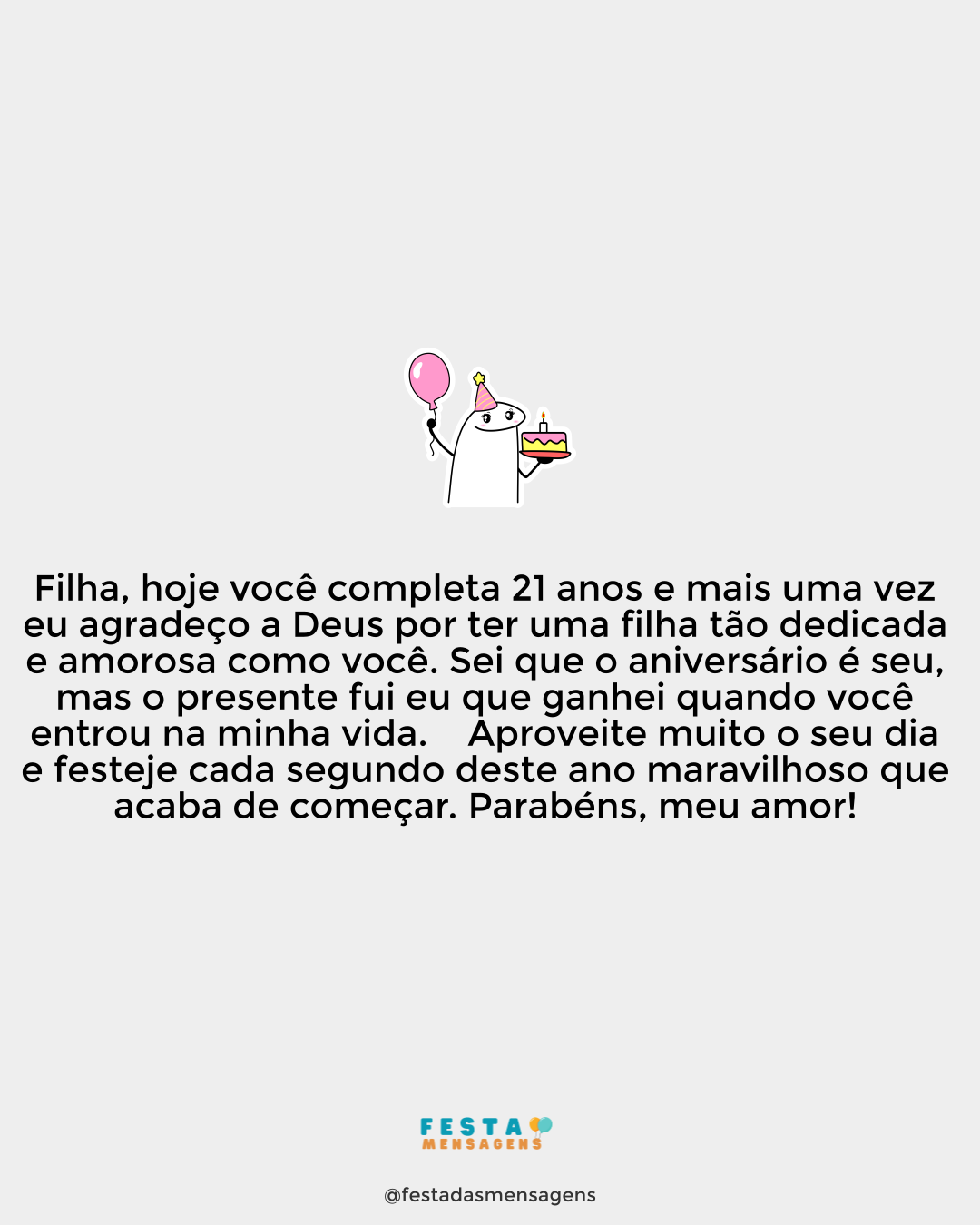 Feliz aniversário! Espero que hoje tenha um dia lindo e sorria muito, mas não demais, que nesta idade as rugas já vêm para ficar. 😁😂
