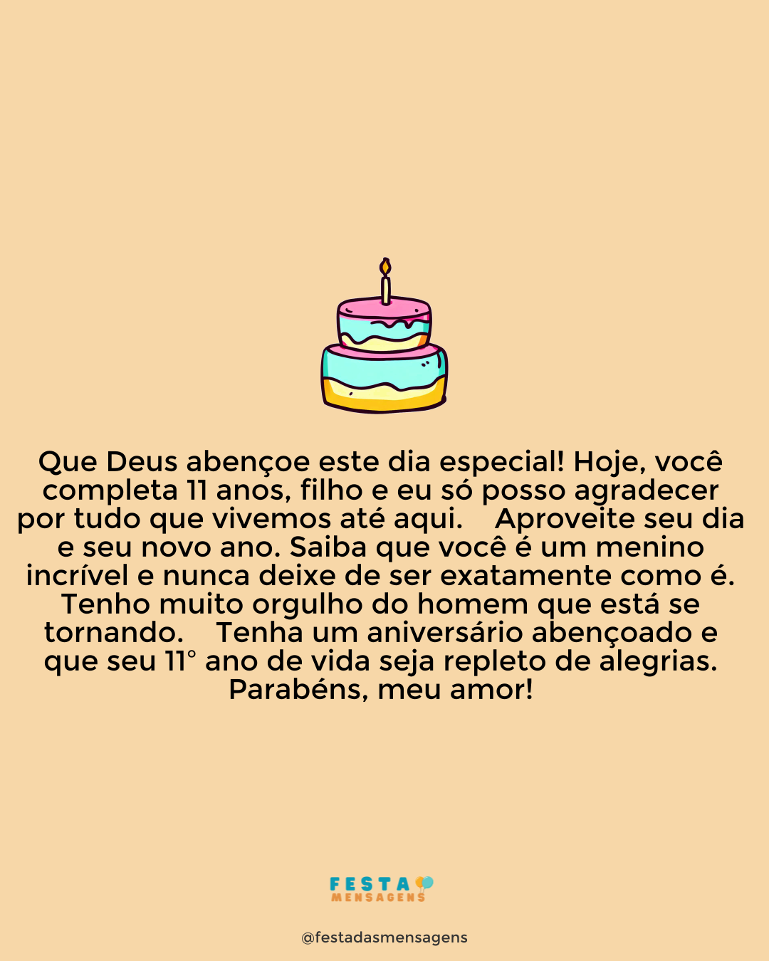 Parabéns, meu neto! Sua devoção e amor por Deus são videntes e sei que o Senhor vai recompensar a sua devoção com mais um ano de vida com muita saúde, alegria e sucessos. Você é um menino de ouro e um neto que me enche de orgulho em todos os momentos. Espero que o seu dia seja iluminado e que todos os seus sonhos se tornem realidade, com a graça de Deus. Aproveite e o seu dia e seja muito feliz! Parabéns! Te amo, meu neto!