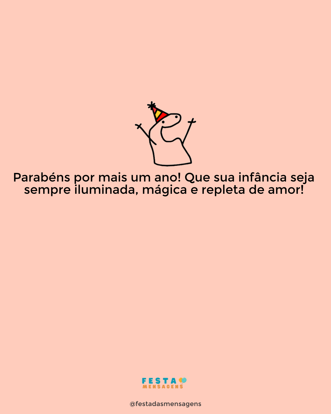 Ser criança é tudo de bom e eu espero que este aniversário seja como deve ser: feliz e divertido! Parabéns!