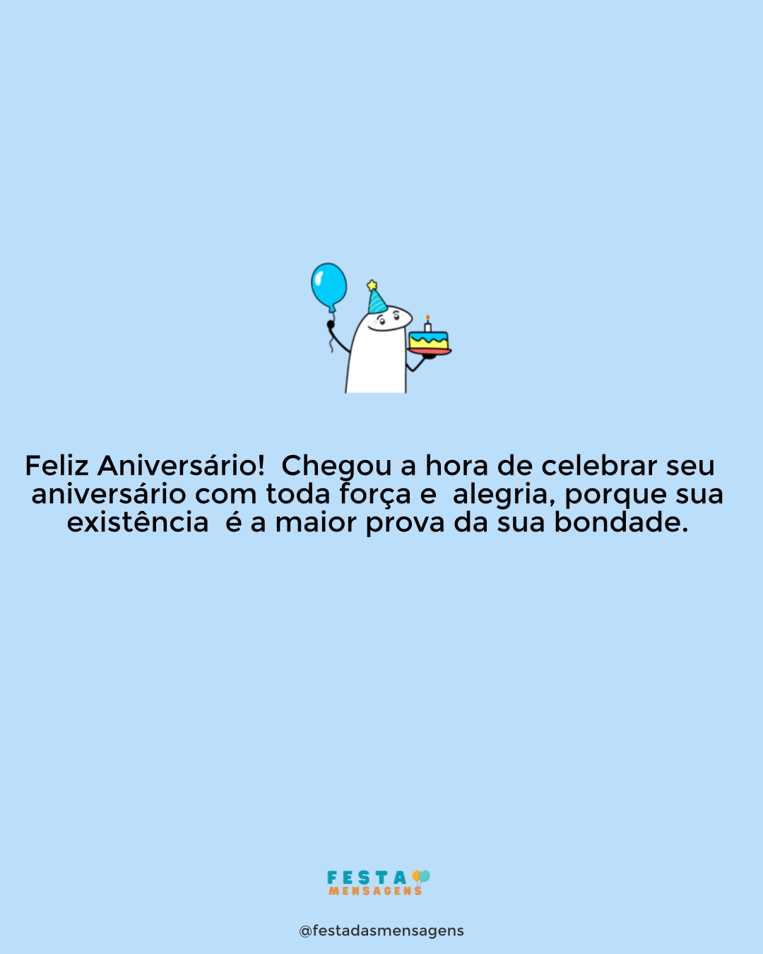 Parabéns pelo seu dia! Que seu aniversário traga toda a alegria que você merece. Sei que você é um menino incrível e que tem uma família que o ama muito. Não esqueça de agradecer a Deus por mais um ano e por mais uma oportunidade de ser feliz. Desejo um aniversário abençoado, com tudo que você sonhou. Sorria, brinque, dance e faça o que quiser fazer, pois hoje o dia é todo seu. Feliz aniversário!