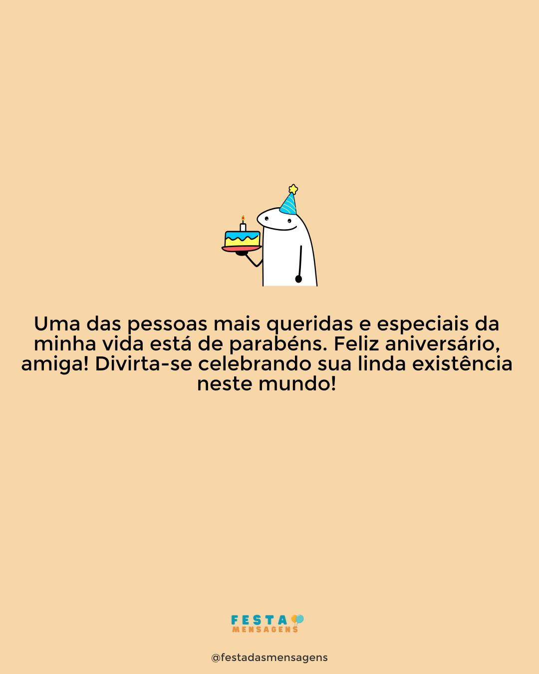 Parabéns! Que seu dia seja lindo. A ansiedade de festejar o aniversário vai diminuindo à medida que a gente vai crescendo. Os anos vão passando e a gente não vive esse dia com a mesma intensidade. Acontece que não deveria mais ser assim. Não deveria nunca ter sido assim. Chego a conclusão que o aniversário serve para a gente celebrar nossa existência e por isso deveria ser sempre um dia especialmente fervoroso. Você é minha mãe emprestada (não gosto de chamar você de madrasta) minha amiga tão adorada. Nunca liguei muito para essa coisa de procurar razões para amar. Na verdade, eu amo você e creio até que amo desde sempre. Não sei porquê! Motivos não faltam, você foi sempre dedicada, tornou meu pai um homem mais confiante e alegre, e fez de mim uma pessoa melhor. Obrigado! Bom...é hora de festejar. Confesso até que me sinto um pouco inquieto e ansioso porque você faz mais um ano de vida. Que o meu carinho esteja sempre do seu lado, não só hoje mas sempre. Beijo, minha amiga!
