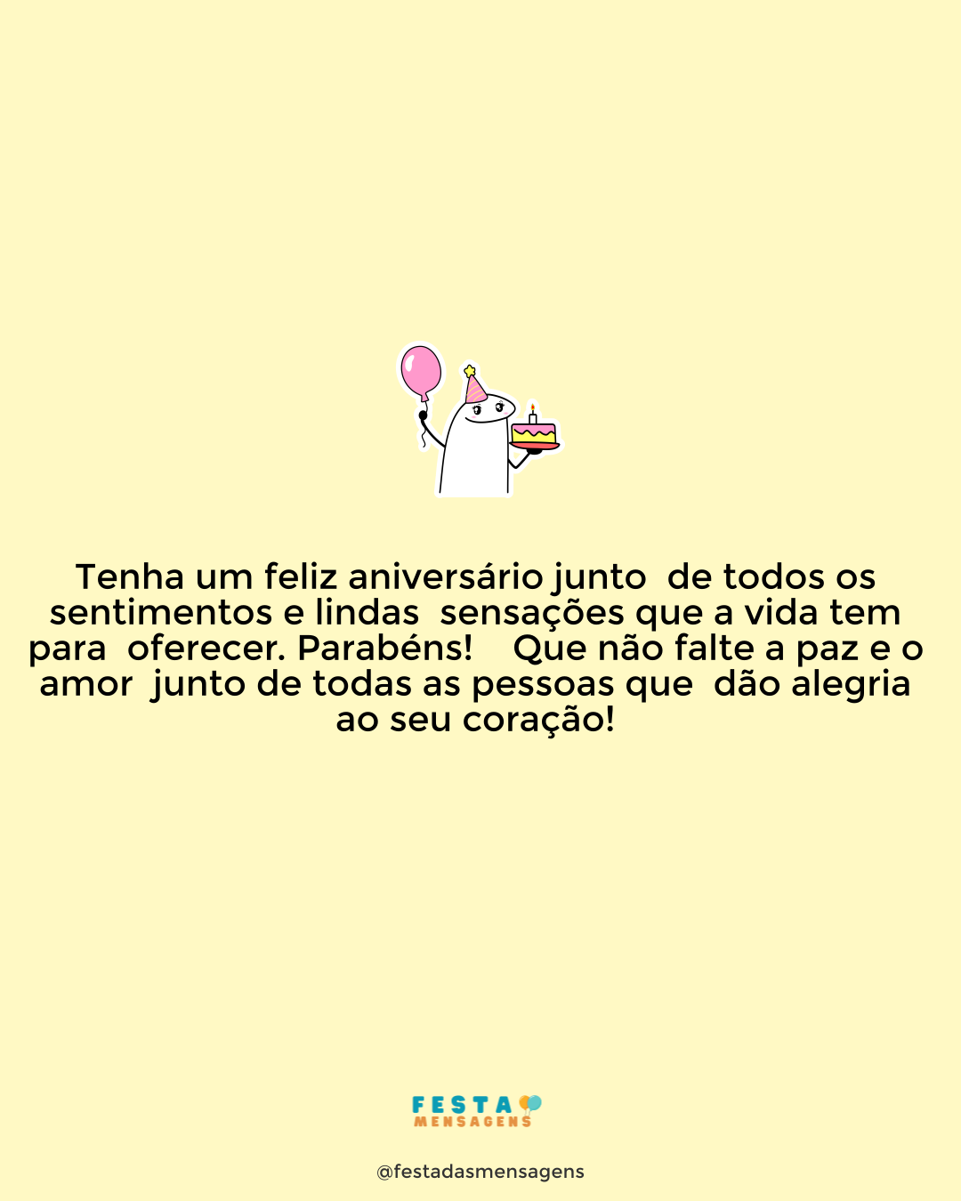 Feliz aniversário! 🎉 Hoje é seu dia e vale pedir qualquer coisa, só não peça para voltar no tempo, esse barco já foi. 😜