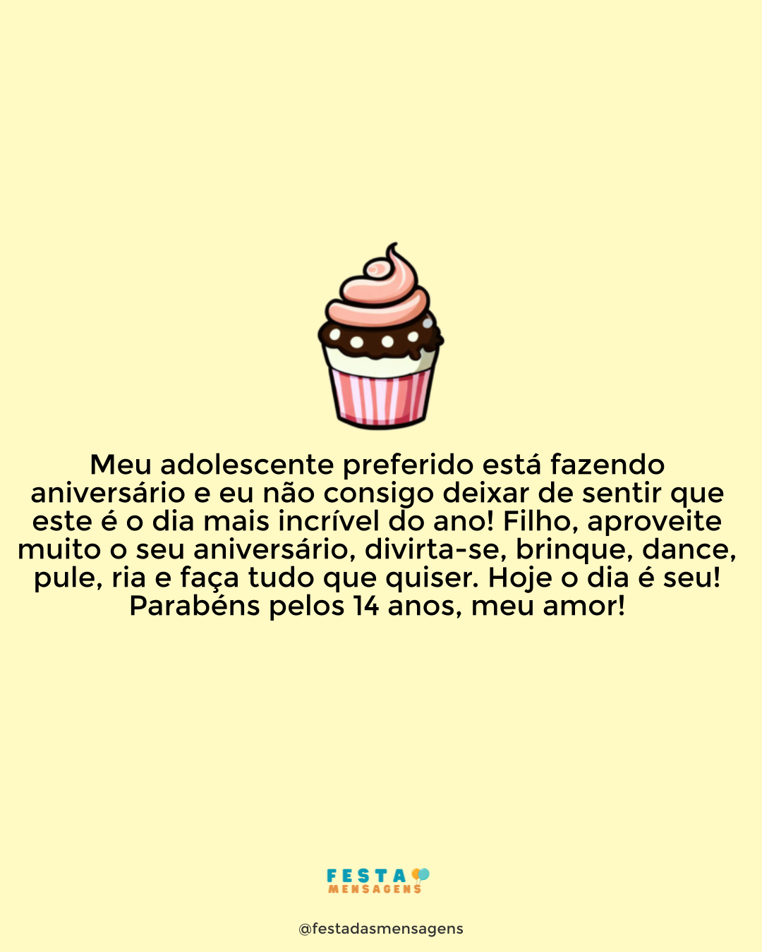 Celebrar a minha existência é o melhor e mais belo que faço na vida. E hoje, por completar quinze anos de vida, estou especialmente feliz. Esta etapa é mais do que importante para mim; é o começo de algo novo e maior. É por isso que não aceito presentes pequenos nem beijos e abraços rápidos. Quero tudo em grande estilo! Brincadeira! O que desejo mesmo é os amigos e a família ao meu lado para todos comemorarmos a vida; a minha vida. Estão todos convidados e só peço que tragam um pequeno grande presente: o amor. Nada é tão poderoso como o amor! Na verdade, é cada um de vocês que me mostra e revela esse sentimento tão nobre todos os dias. Parabéns para mim! Vamos celebrar a vida!