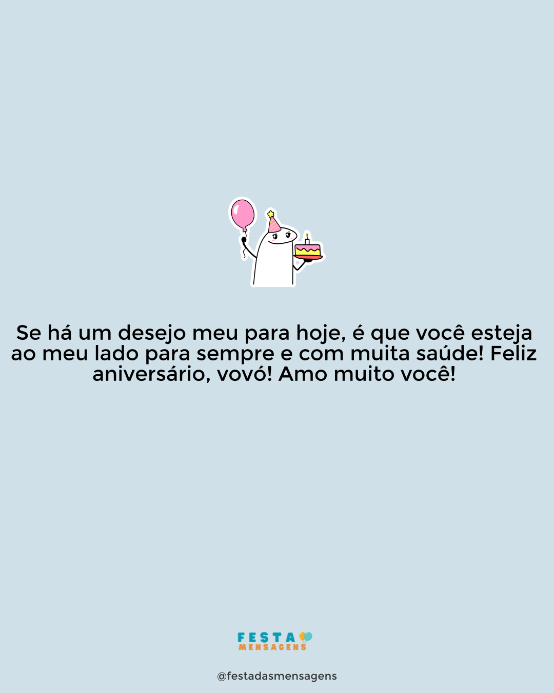 Deus está sempre com você, meu neto amado e tão querido, mas hoje, Ele está ainda mais presente. Tenha um aniversário muito, muito feliz, repleto de emoções positivas, alegria infinita e uma grande festa! Parabéns, fofinho, por mais um ano incrível, de sucessos, vitórias e conquistas! Tenho muito orgulho em você, nas coisas que compartilhamos desde sempre e no que ainda vamos viver! Conte comigo para tudo, mas para tudo mesmo! É que só seu bem-estar e felicidade me interessam de verdade! Divirta-se, hoje e sempre, e prepare-se para surpresas inesquecíveis!