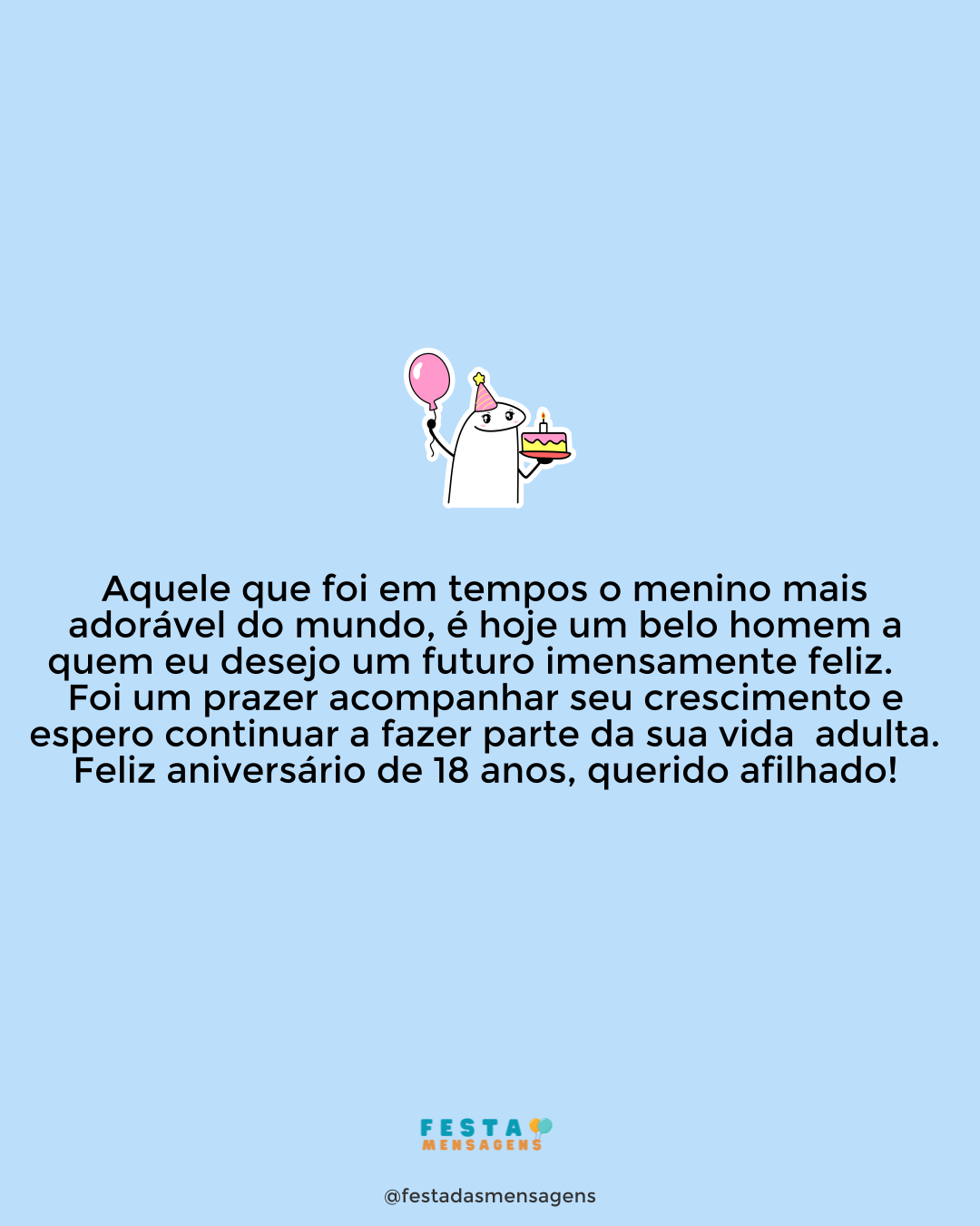Os dois primeiros anos de vida do meu afilhado querido já passaram e foram imensamente especiais. Parabéns, meu pequeno amorzinho! Que a vida lhe sorria sempre! Sou uma pessoa de muita sorte por ter uma criança assim tão importante ao meu lado. É incrível como nosso amor cresce a cada novo dia! Espero que hoje e sempre ele se sinta em paz, divertido e mantenha aquele brilho incrível no olhar. Dependendo de mim, ele estará eternamente de bem com a vida! Feliz aniversário, meu querido!
