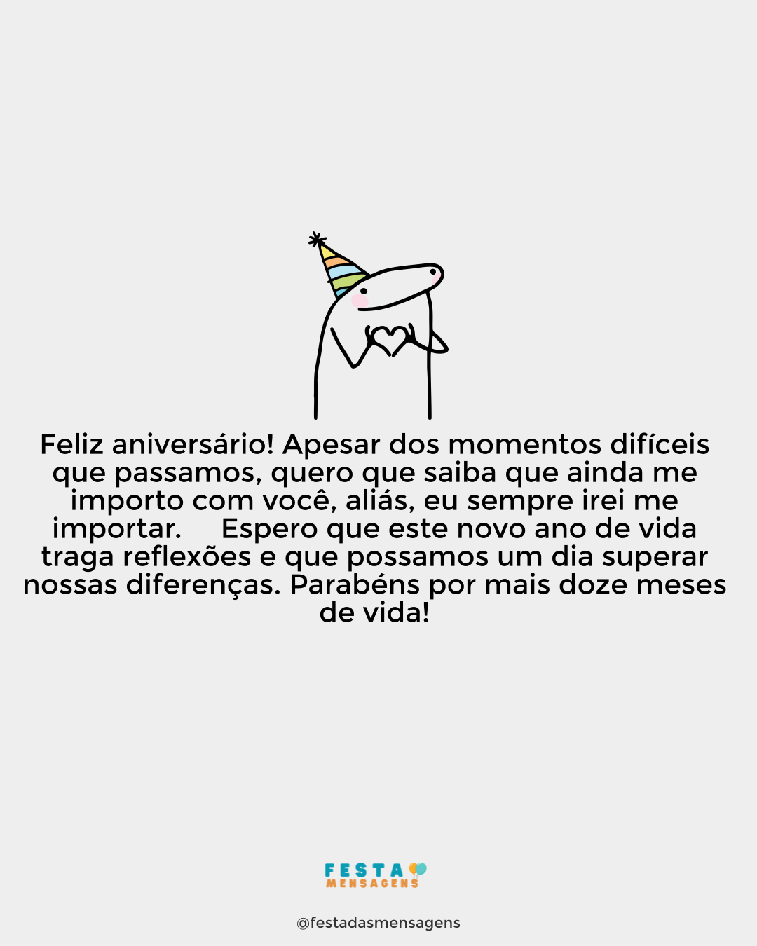 Para mim não importa o que os outros dizem, você é meu filho do coração e isso é tudo que importa. O amor que tenho por você é imenso. É emocionante estar presente neste dia e ver você completar mais um ano de vida. Você sempre será uma parte de mim, afinal, esta ligação que compartilhamos é algo forte demais. Que seu novo ano seja repleto de alegrias e felicidades. Que as portas se abram e que você saiba aproveitar as oportunidades. Feliz aniversário, meu filho do coração. Lembre-se que, não importa o que aconteça, estarei sempre ao seu lado!