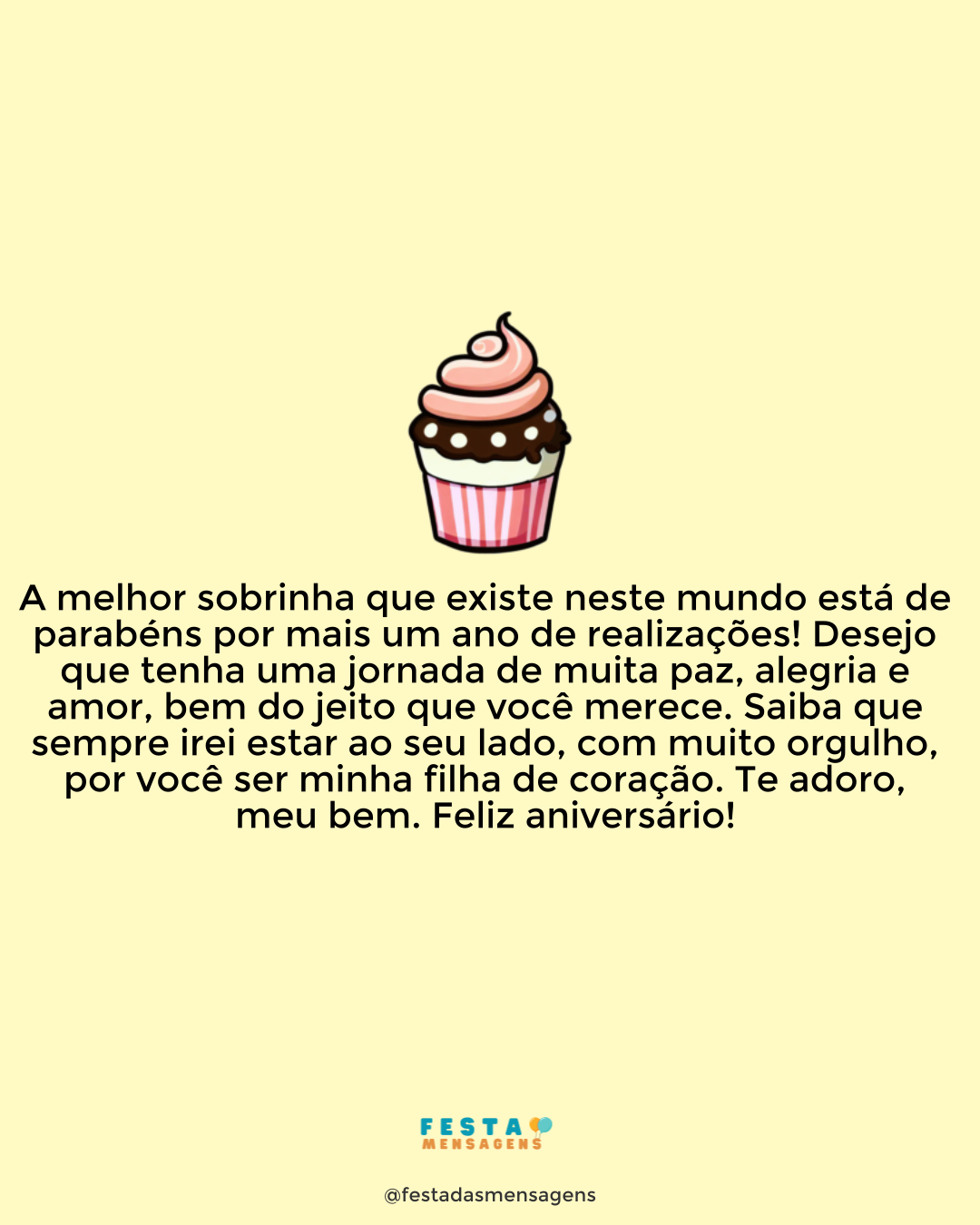 Algumas criaturas de Deus têm um dom especial de trazer alegria e paz para aqueles que estão perto. Você é uma destas criaturas. É impossível não sorrir ao teu lado. Minha prima amada, minha irmã de fé e de jornada, sou grata a Deus por ter você junto a mim nesta caminhada que é a vida. Com você, aprendo a ser tolerante, paciente, confiante. Com você aprendi que é preciso orar e orar, não para que Deus nos escute, mas sim para que finalmente despertemos em nós a capacidade de ouvir a Deus. Parabéns pelo seu aniversário e parabéns pela pessoa maravilhosa que você é. É uma grande felicidade para mim ter você como minha prima. Desejo a você muita paz em seu coração, muitas realizações, saúde e uma vida plena de luz. Te adoro minha prima.
