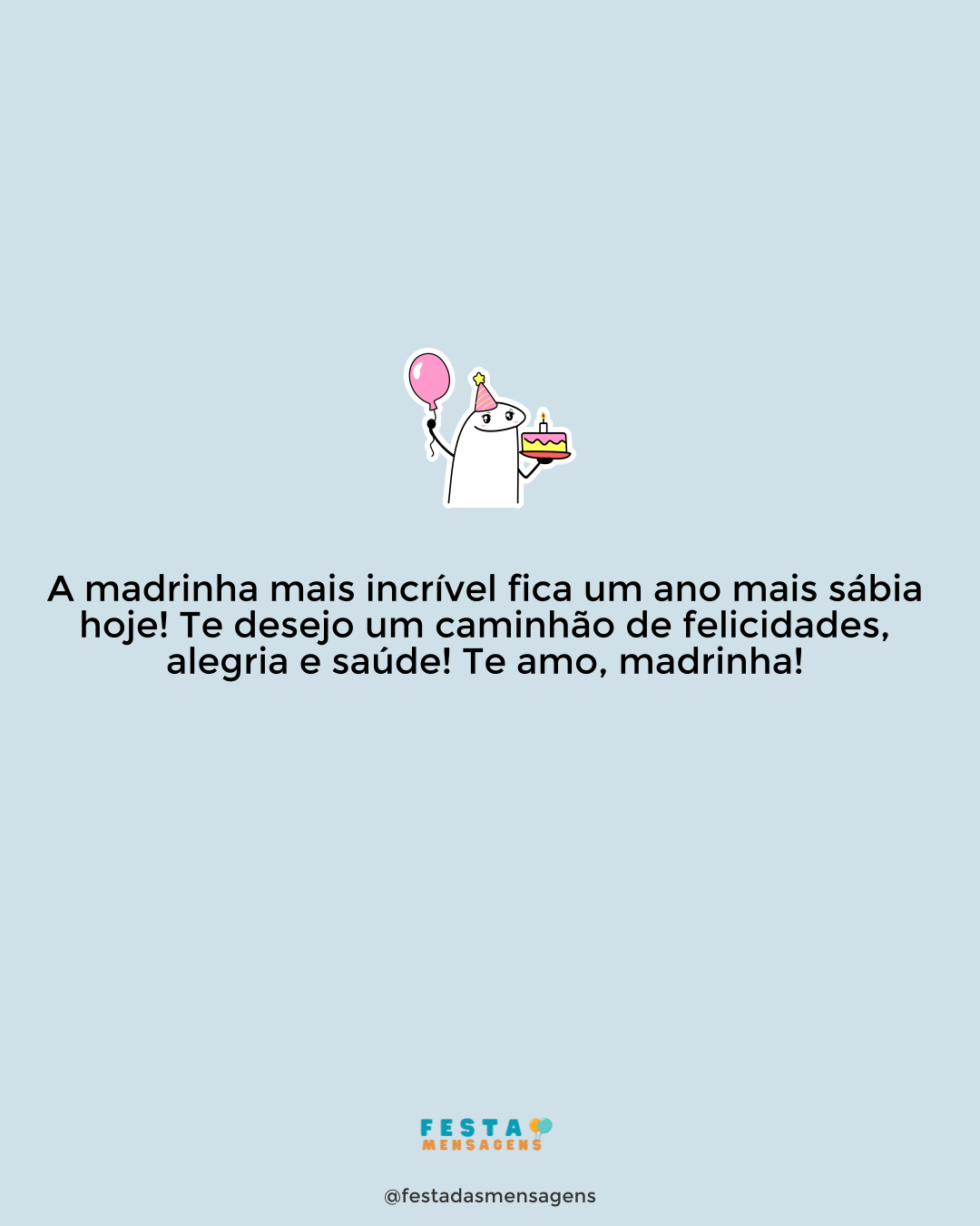 Hoje é o seu aniversário, querida madrinha, e quero lhe desejar não só um grande dia, mas todo um novo ciclo repleto de paz, amor e saúde. Você é muito importante para mim e só posso lhe agradecer por ser essa pessoa maravilhosa que está sempre pronta para me apoiar, com quem eu posso contar para tudo. Que Deus abençoe sempre você e ilumine os seus passos! Desejo um feliz aniversário com todo o meu amor!