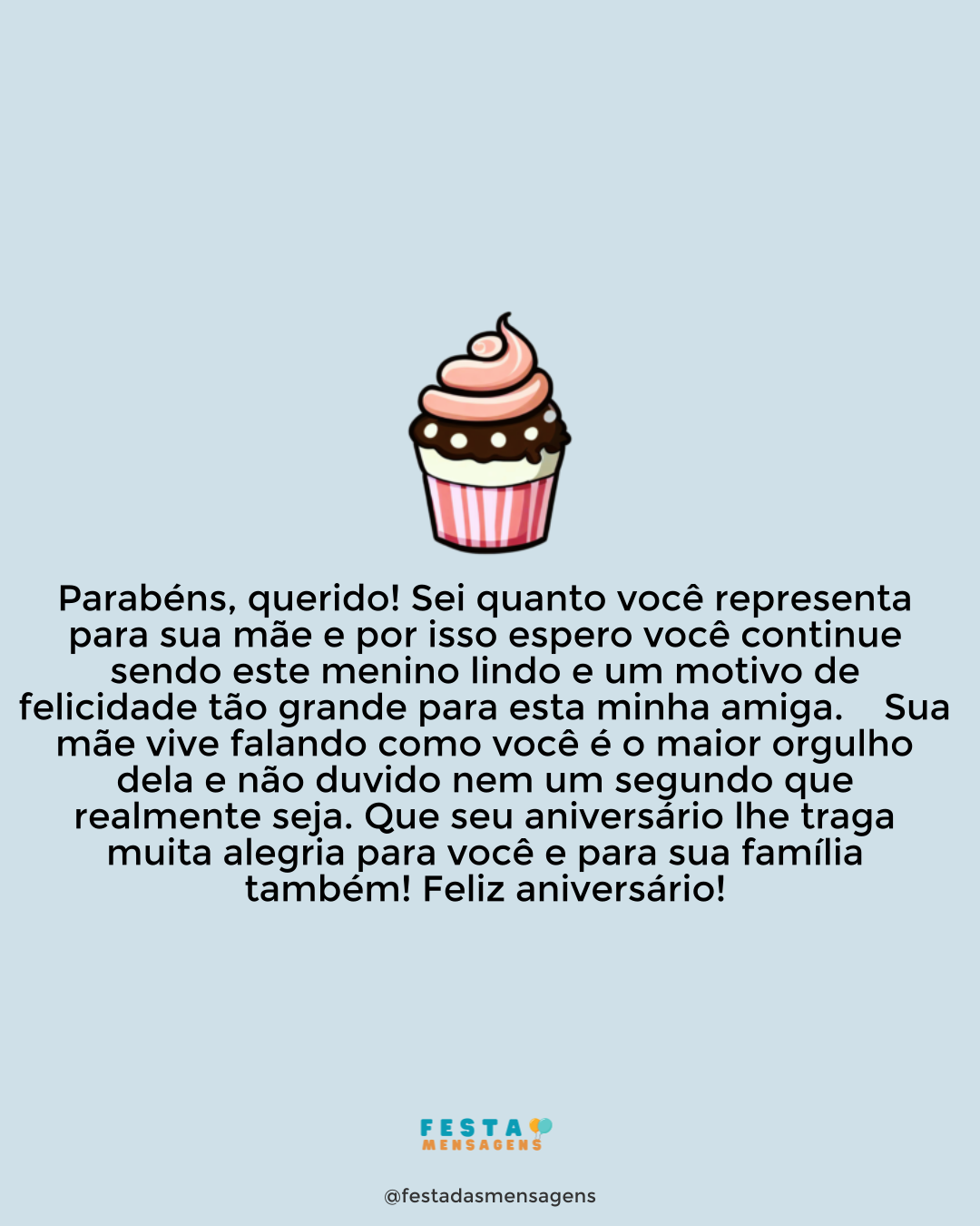 Chegou o seu aniversário e eu não podia deixar de dar os meus parabéns a alguém com quem tenho compartilhado tanta coisa boa e que tem uma aura tão positiva. É com grande orgulho que me insiro no círculo das pessoas que convivem com você, pois alguém assim tão gente boa não se encontra todos os dias. Que Deus proteja sempre você, que ilumine os seus passos e que lhe dê tudo o que há de bom nesta vida, pois você não merece menos do que isso. Sabe que poderá contar sempre comigo para o que for preciso. Um feliz dia de aniversário e muitas felicidades!