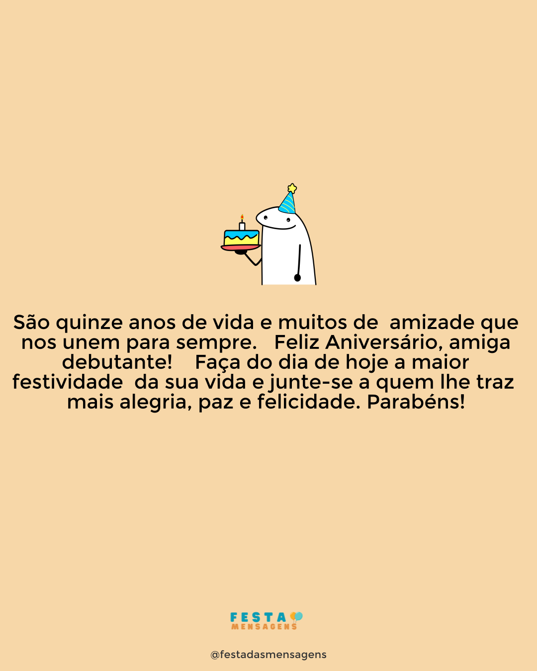 Querida princesa, eu nunca escondi meus elogios a você. Acho que uma mãe deve sempre lembrar quão importantes são seus filhos na sua vida. E hoje por você completar quinze anos de vida eu quero lhe deixar uma palavra de agradecimento. Feliz aniversário, filha! Neste baile que é a vida eu desejo que você dance todos os dias com a alegria sem limitações, a paz sem fim e o amor incondicional de quem traz calor ao seu coração. Seja sempre feliz, sempre sempre essa menina doce e maravilhosa! E lembre-se, meu amor, que eu estarei sempre ao seu lado e juntas venceremos quaisquer desafios e sorriremos comemorando todas as vitórias. Mas agora simplesmente sinta-se de bem com a vida. Aproveite sua adolescência e especialmente esta data de princesa! Te adoro, querida! Parabéns!