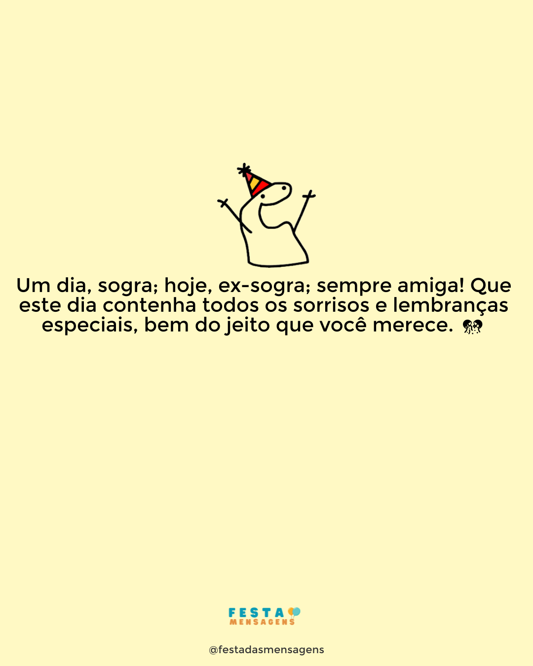 Querida nora, o seu aniversário é a prova de que o Espírito Santo está aqui entre nós, permitindo que sua vida seja o caminho para a salvação. Sei muito bem que você é um exemplo de fé e otimismo, que sempre seguiu firme no propósito de servir o nosso Deus, por isso tenho certeza de que ele reserva para você momentos de muita paz, e alegria sincera. Que essa data possa ser comemorada por muitos e muitos anos, e que juntas possamos cantar as canções de amor que unem os corações de todo o mundo. Saiba que a presença de Deus é como brisa suave que nos cura de todo e qualquer mal, e nos dá vida e poder. Continue exaltando o amor de Deus e certamente os seus dias estarão iluminados, e seu lugar guardado no céu. Grandes bênçãos para você nesse dia! Feliz aniversário! Um grande abraço da sua Sogra.