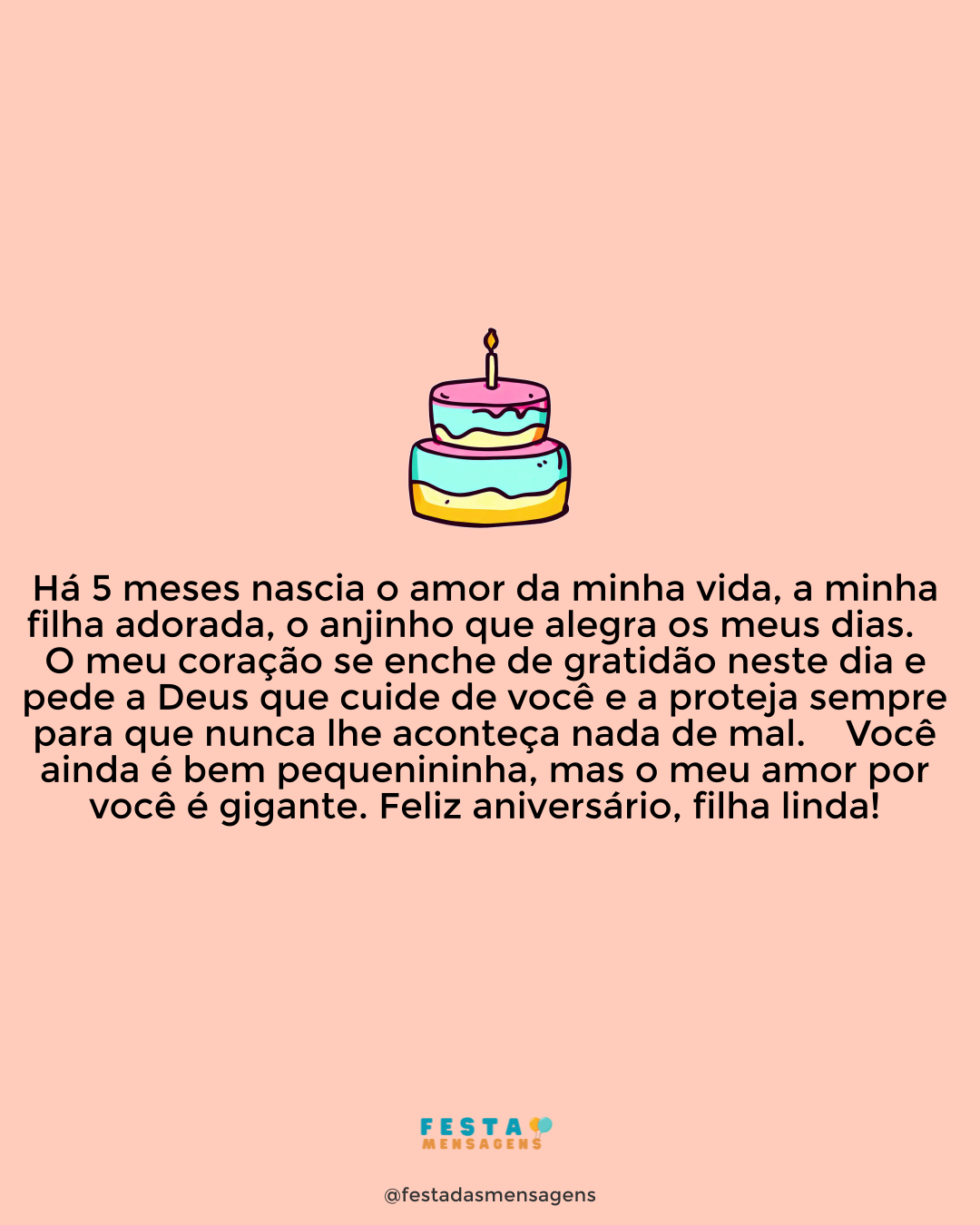 Que a saúde, a alegria e a felicidade acompanhem sempre você, minha filha. É tão bom vê-la feliz e contente para celebrar seu 12º ano de vida. Aproveite sua festa, curta a presença dos seus amigos e amigas e saiba que estarei sempre ao seu lado. Você ilumina meus dias e é a razão da minha maior felicidade. Tenho muito orgulho desta menina especial que você é. Feliz aniversário, minha filha amada!