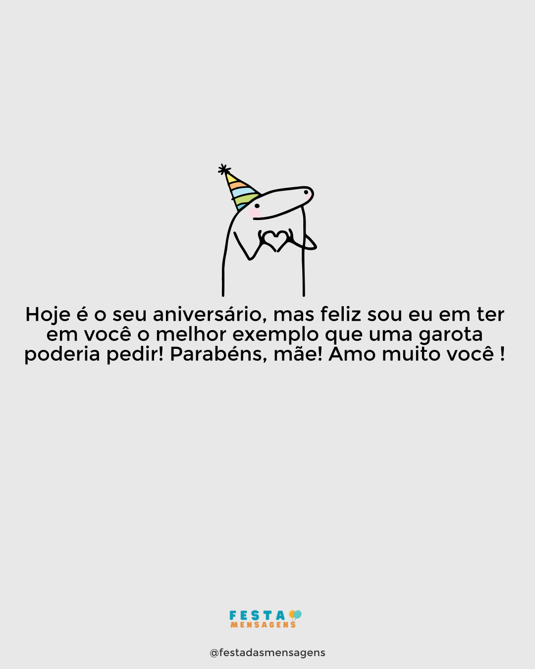 Parabéns, mãe! Hoje celebramos mais um aniversário seu junto de todas as pessoas que você gosta e, claro, junto do olhar atento de Deus. Ele tem sido a grande bênção na nossa vida! Na verdade, é uma alegria compartilhar as mesmas crenças, histórias e experiências com você, mamãe! Desejo que você celebre muitos e muitos anos de vida, até porque só ao seu lado sou verdadeiramente feliz. Beijo, mãe! Te amo.
