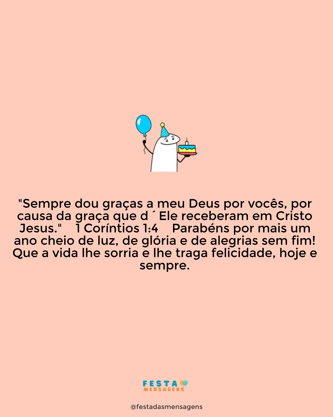 "O diabo fica nas esquinas da vida nos mostrando o que não fizemos, ao passo que Deus pega em nossas mãos e nos mostra o que pode ser feito." - Padre Fábio de Melo Que neste dia tão especial, você consiga absorver esta mensagem e a leve sempre em seu coração. Que Deus ilumine sua vida, guiando-o para assim conseguir ver o melhor caminho que deve seguir, as melhores palavras que devem ser ditas, e a melhor atitude a ser tomada nas decisões mais importantes. Desejo-lhe tudo de melhor que a vida pode lhe dar, que continue sendo esse genro maravilhoso, e que Deus nos permita comemorar muitos outros aniversários. Parabéns!