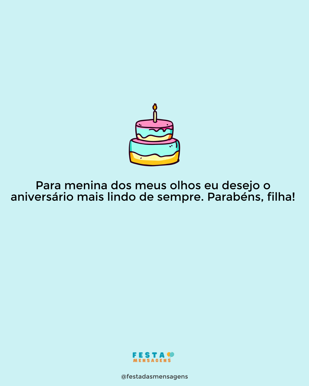 Filhinha, como o tempo tem passado rápido! No próximo ano você será debutante, estará entrando para esse mundo confuso da adolescência. Parabéns pelos seus quatorze anos e divirta-se muito! Que hoje não lhe faltem presentinhos, palavras doces e muitas coisas boas, bem do jeito que você merece. Filha, curta seu dia e preserve sempre essa sede de ser feliz.