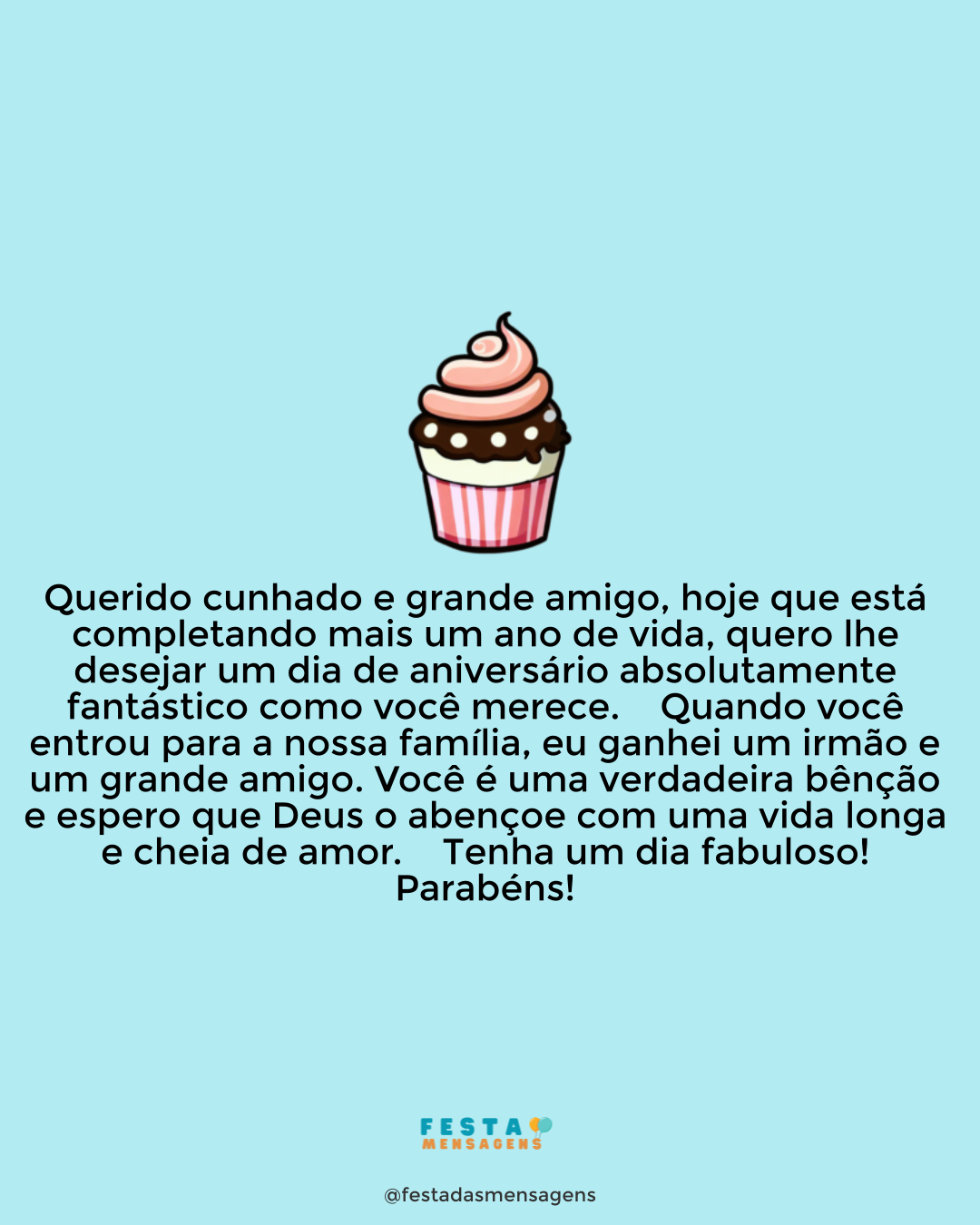 Parabéns, amigo! Você está ficando cada vez mais velho, agora até já é adulto de verdade! Brincadeira. Sempre achei você muito responsável, por isso agora que completa dezoito anos de vida nada vai mudar. Só desejo que a alegria de viver continue se manifestando no seu rosto e que a felicidade, a paz e o amor estejam sempre ao seu lado. Tenha um dia memorável, meu amigo!