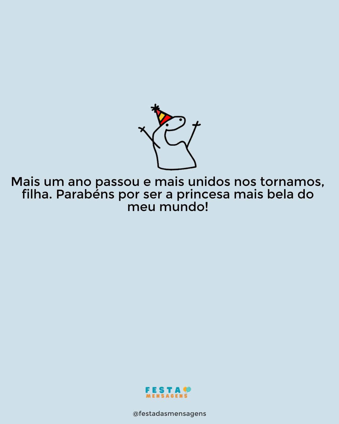 Eu gosto tanto de você, filha, que nem consigo sequer explicar de onde vem todo este meu amor! Hoje, você completa seu décimo terceiro ano e eu estou incrivelmente feliz por estar ao seu lado. Parabéns, querida! Saiba que a adoro do fundo do meu coração e todos os dias torço para que todos seus sonhos de menina se tornem realidade. Nunca desista de correr atrás nem de acreditar que tudo é possível de acontecer. Espero que goste da festa que preparamos e também dos presentinhos que compramos. Você é minha luz, a inspiração maior da minha vida e o motivo de toda minha alegria. Feliz aniversário, filha!