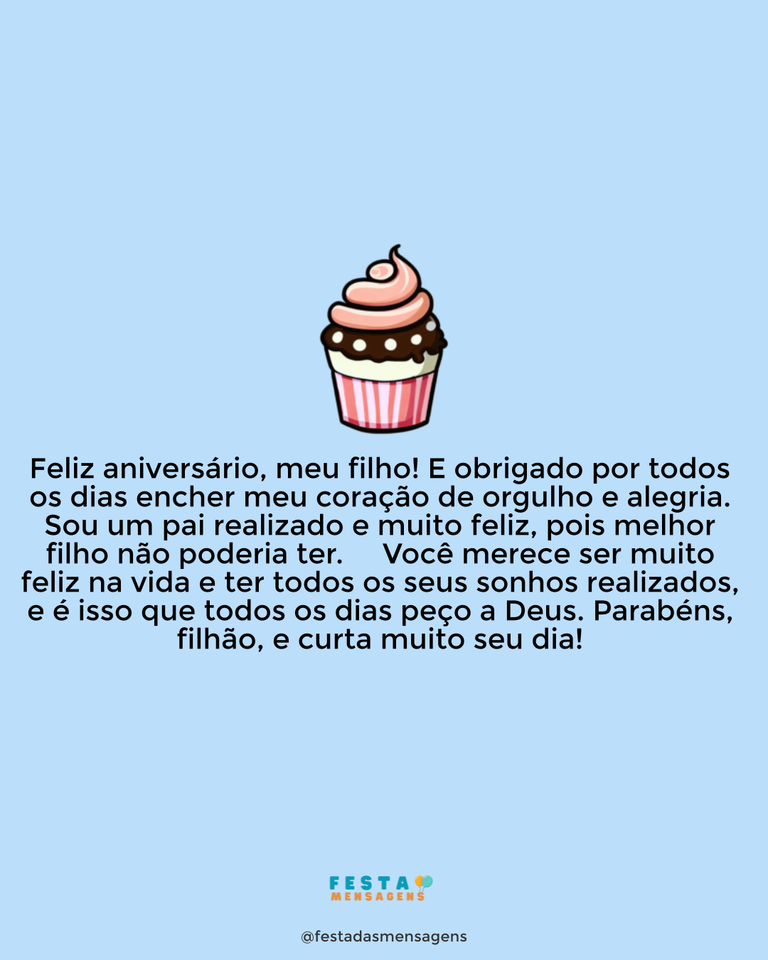 Filho, quero que saiba que o orgulho que sinto por você é indescritível. Parabéns! Seja feliz…