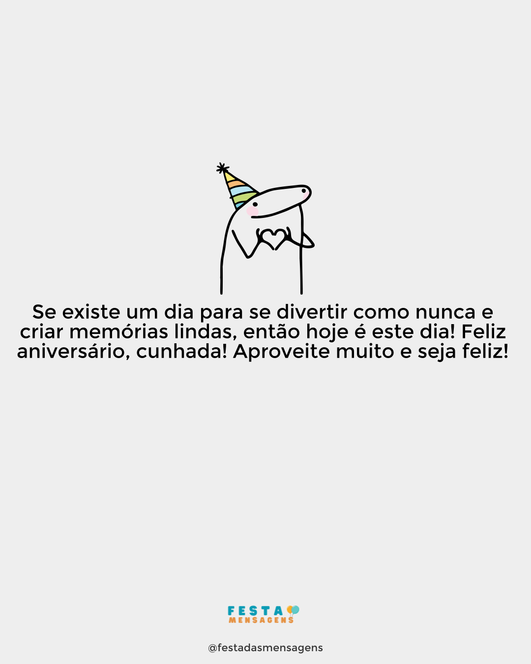 Quando uma pessoa que eu amo completa mais um ano de vida, é claro que a felicidade invade também o meu coração. E é isso que está acontecendo hoje, pois esta é a sua data e eu não poderia estar mais radiante por você! Parabéns, minha concunhada querida! Ter você como uma familiar é divino e sinto que entre nós há um sentimento sincero e puro digno de duas pessoas que realmente se gostam e querem o melhor para o outro. Aproveite muito o seu dia e a felicidade que faz parte dele! Meus votos de muita saúde, paz, alegria e, claro, muito amor. Parabéns!