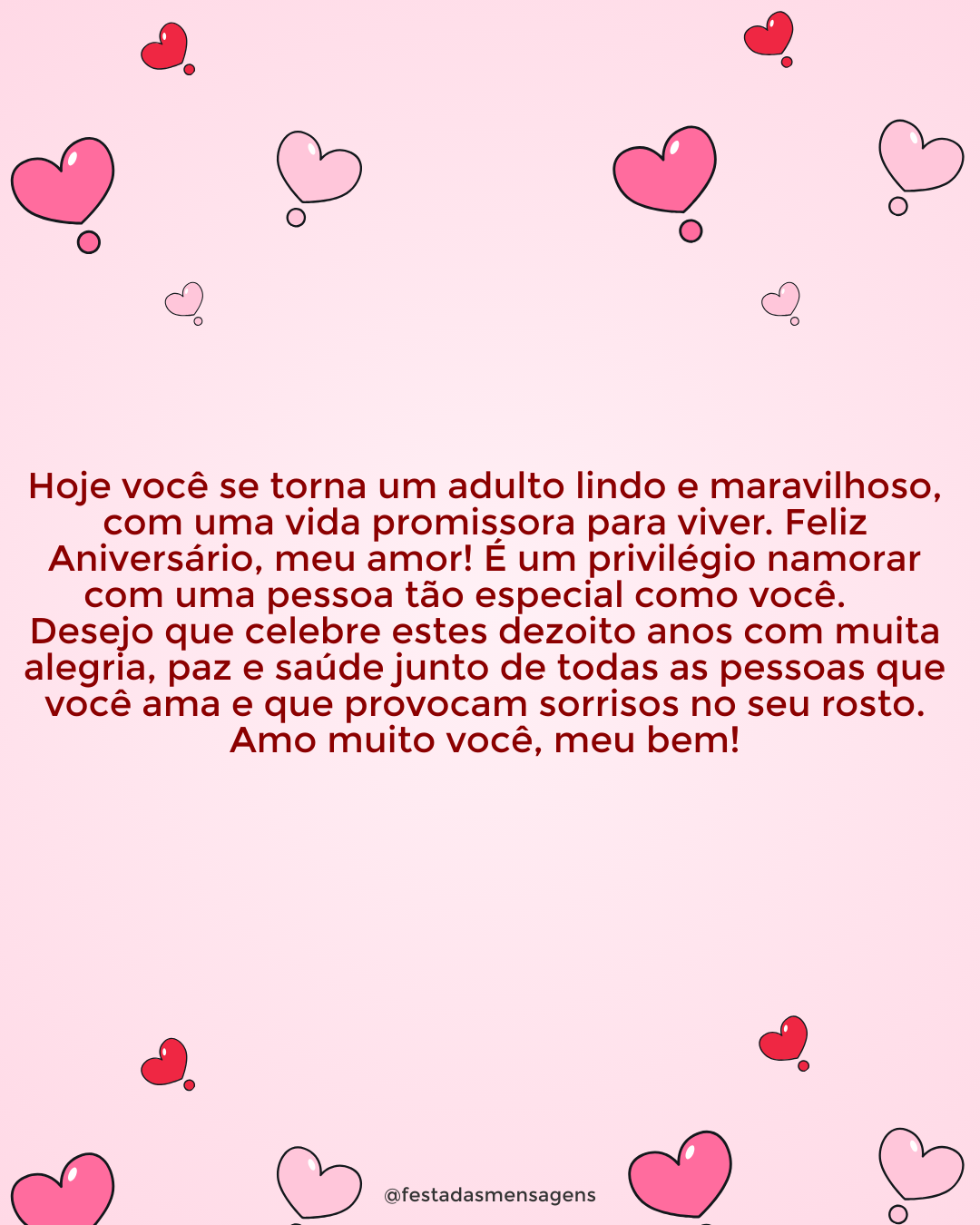 Parabéns, querida! A distância é um monstro quando separa dois corpos que se amam! Eu sinto muito sua falta, prima! Mas tenho certeza que vamos superar a saudade e em breve estaremos lado a lado. Aí vamos celebrar como nunca celebramos; vamos dançar, dar risada e até pular de tanta alegria. Mas agora é hora de outra comemoração: seu aniversário! Desfrute do seu dia intensamente, prima! Mil beijos.