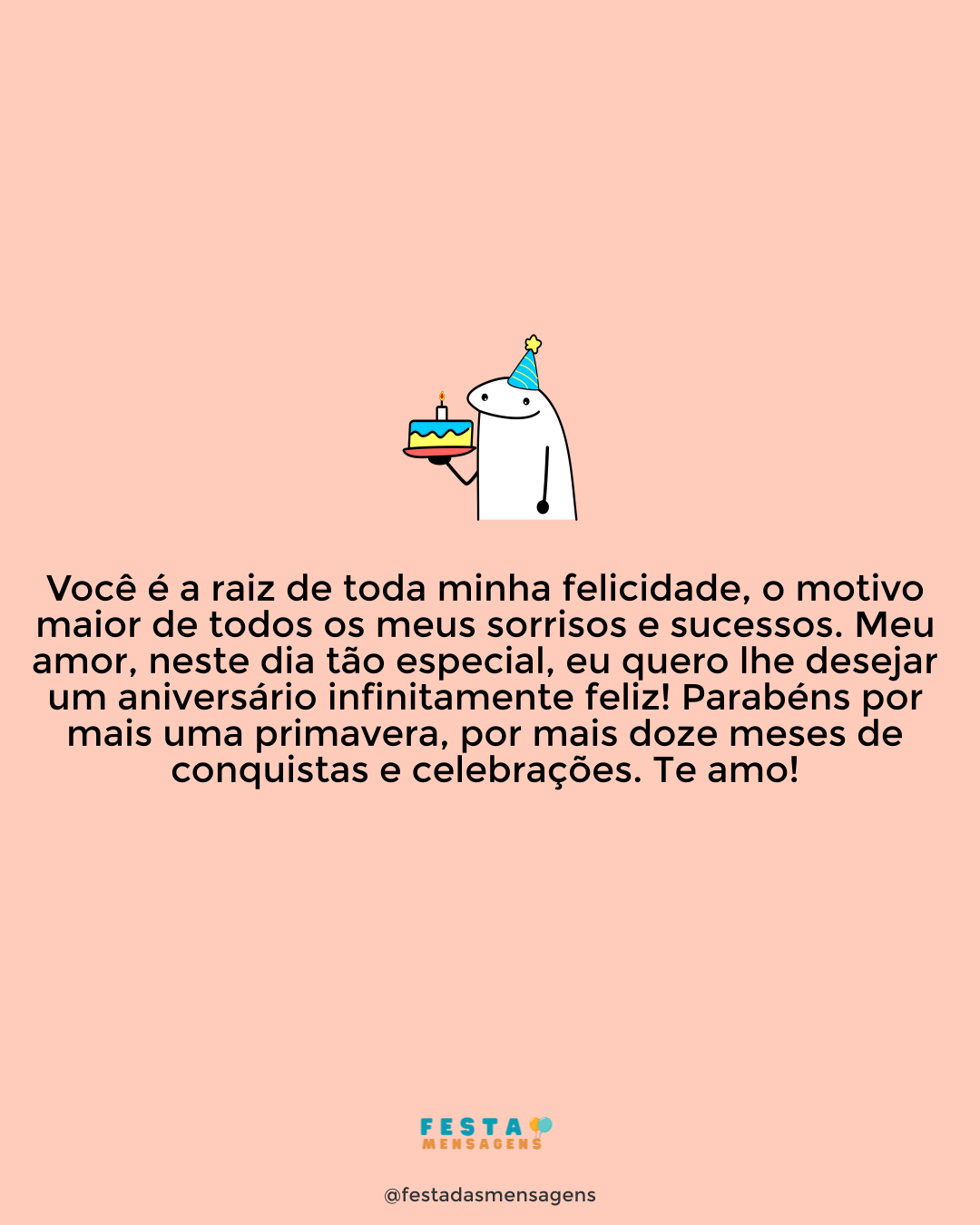 Feliz aniversário, meu amor! Não sei o que lhe dar de aniversário porque, afinal, nada se compara com o melhor presente de todos: ter casado com uma mulher incrível como eu.