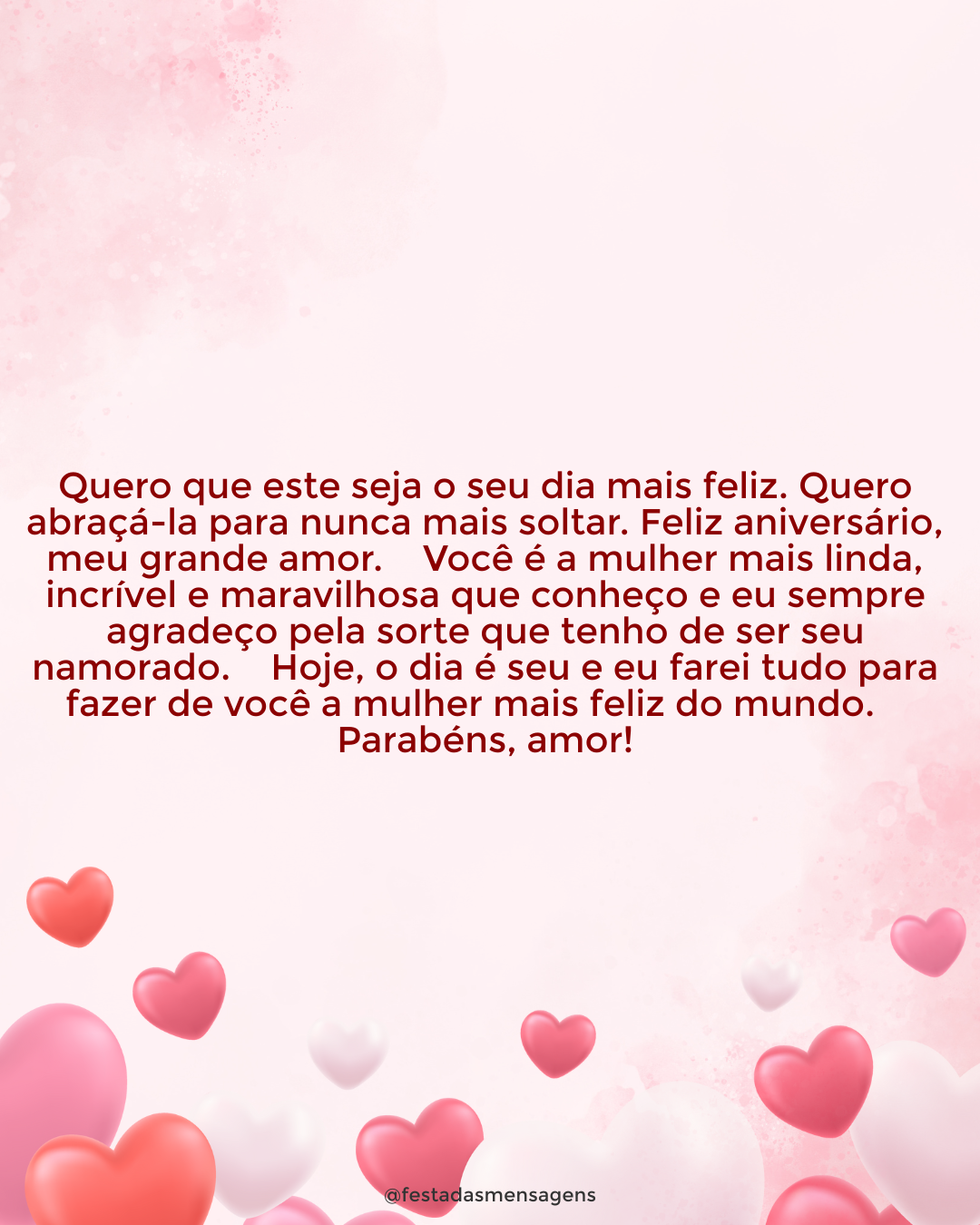 Que o seu dia traga paz, amor e alegria. Completar mais um ano de vida é sempre uma dádiva, é uma oportunidade de buscar sonhos e felicidade, por isso, aproveite. Que seja um dia repleto de amor, de carinho, de abraços calorosos e sorrisos sinceros. Deixo aqui a minha singela homenagem pelo seu aniversário e pela pessoa incrível que você é.